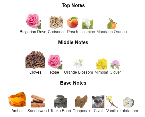 Coco Eau de Parfum by Chanel is a Oriental Spicy fragrance for women. Coco Eau de Parfum was launched in 1984. The nose behind this fragrance is Jacques Polge. Top notes are Bulgarian Rose, Coriander, Peach, Jasmine and Mandarin Orange; middle notes are Cloves, Rose, Orange Blossom, Mimosa and Clover; base notes are Amber, Sandalwood, Tonka Bean, Opoponax, Civet, Vanilla and Labdanum.
